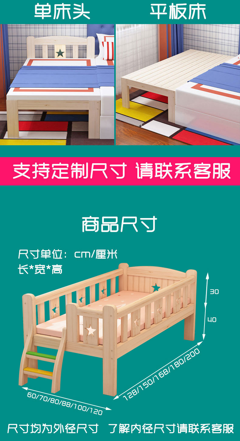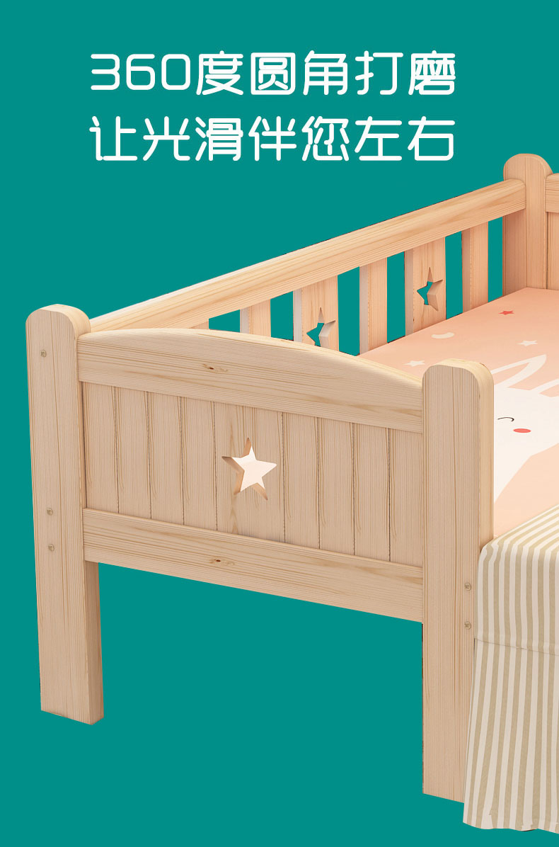 Solid wood children's bed with safety small bed, baby boy girl princess bed, single bed edge bed, widened and spliced large bed, 200 * 100 * 40, two sided safety+3E brown mat (detachable and washable), others without [image price, brand quotation]-