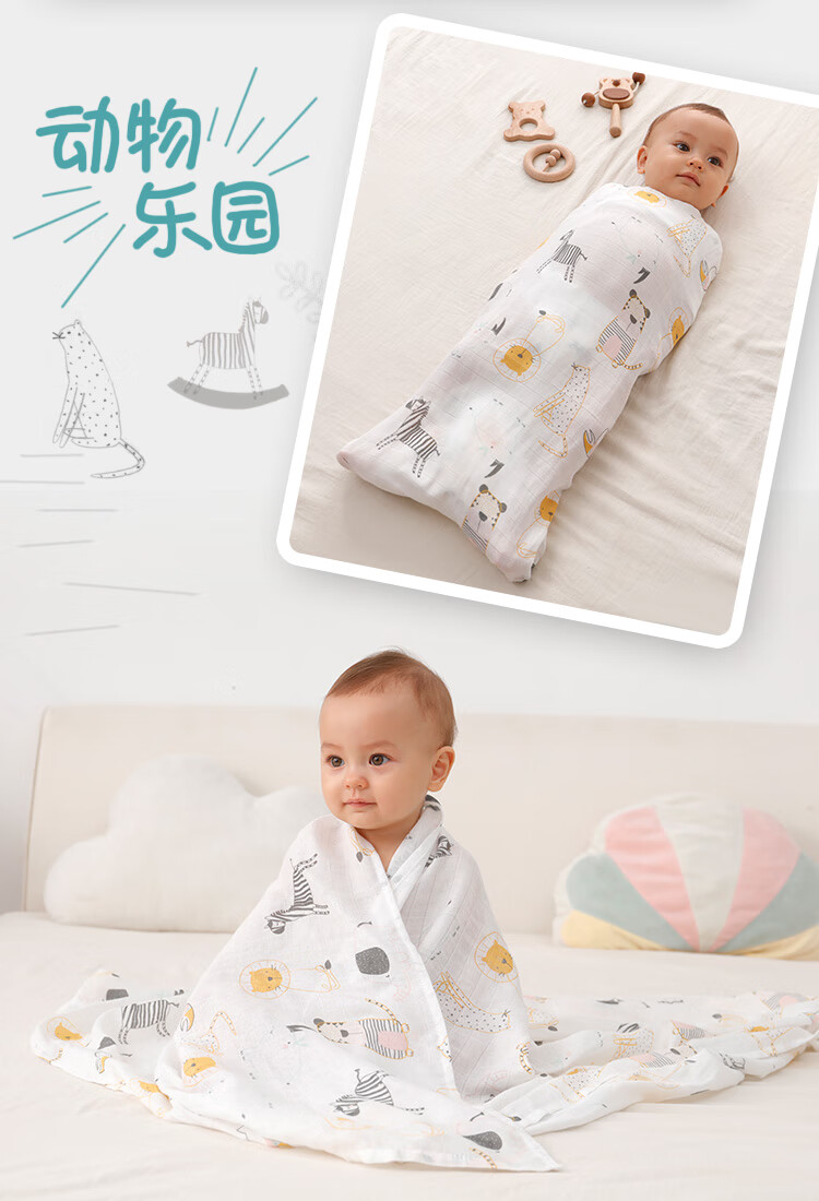 Xiqinbao Baby Wrap Wrap Single Wrapped Baby Anti startle Bag Single Cover Blanket Gauze Shielding Towel Newborn Feeding Towel 115 * 130cm Animal World