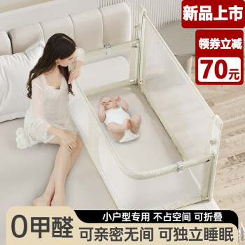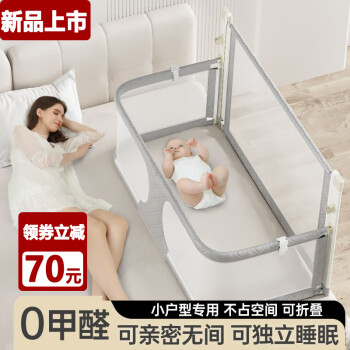 Qiaozun Baby Crib Bedbed, Portable Small Unit, Anti pressure Newborn Baby Fence, Portable Bed Surround, Convertible Crib Bed, Light Grey, 14 Hole Shift Adjustment, and Detachable and Washable Cloth Cover [Image Price Brand Quotation]-