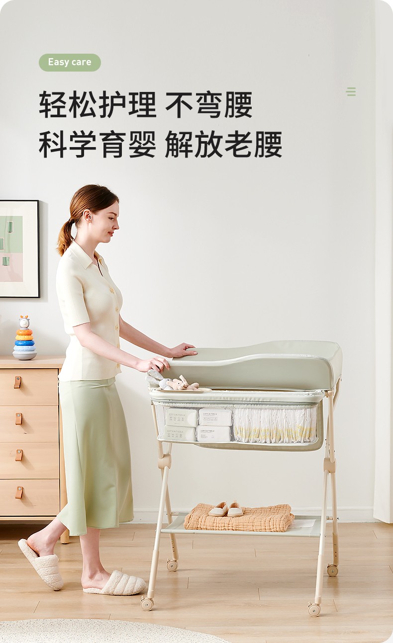 Sweeby changing table Baby changing station Newborn multifunctional portable Convertible Crib Baby massage Baby care table Murphy green: Double layer storage